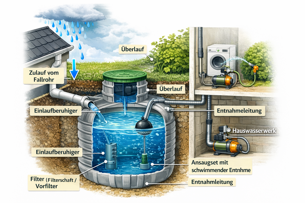 Pumpentechnik & Entnahmestellen (z. B. Gartenwasseranschluss)